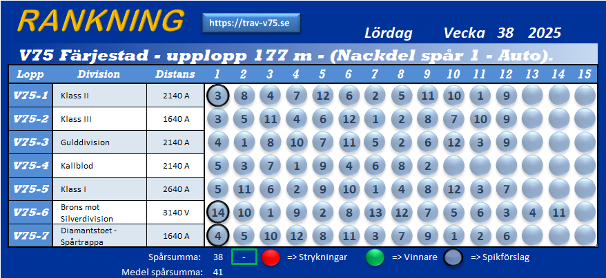 Sedan hösten 2019 har ett unikt system utvecklats för att ranka V75-omgångar och nu kan du ta del av denna expertis här på vår hemsida. Rankingen baseras på aktuella startlistor från ATG, som noggrant analyseras för att ge en så korrekt bedömning som möjligt.